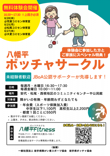 八幡平市内でボッチャを楽しむサークルです。 (一社)日本ボッチャ協会公認サポーターが先導します。